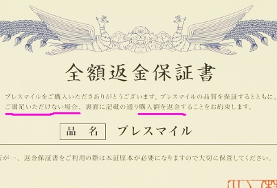 この全額返金保証書が、大事なのです。
