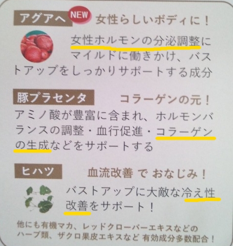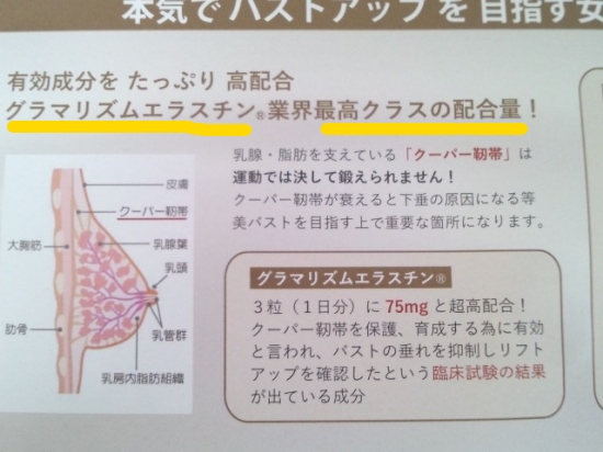 なかでも、グラマリズムエラスチンという、伸縮性や弾力があるたんぱく質繊維が、胸との関係でポイント、なんですよね、きっと。